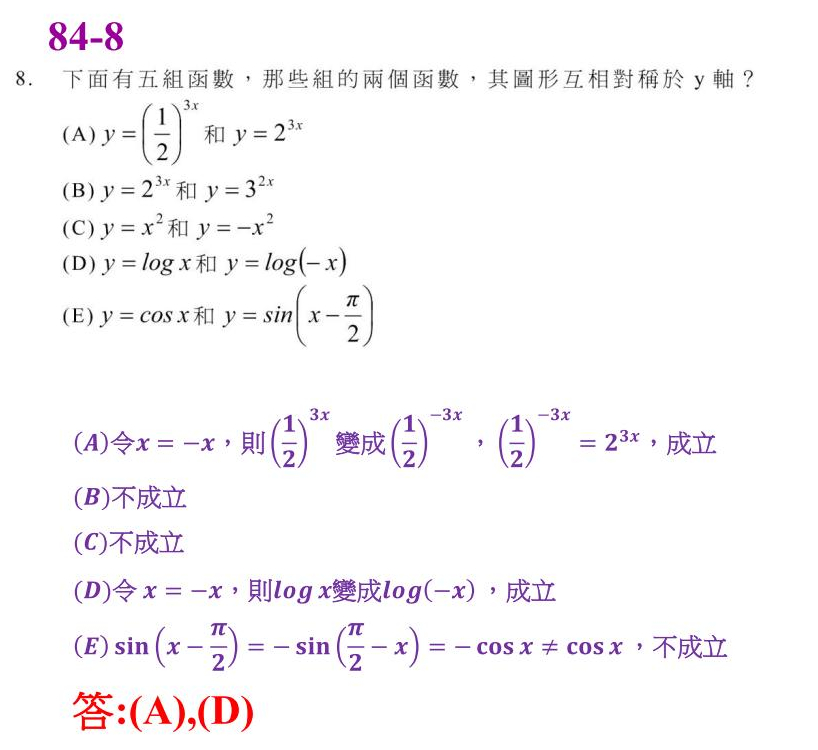 ~台灣歷年大專聯考數學科解答~